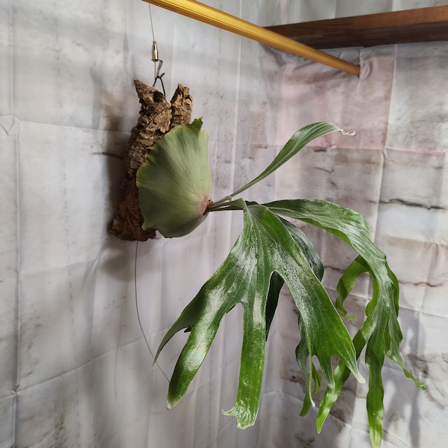 力強い胞子葉とマダガスカリエンセ譲りの貯水葉が魅力の品種です。お部屋にナチュラルな雰囲気をプラスし、落ち着いた空間を演出します。 ■サイズ:高31cm × 幅60cm × 奥60(コルク部分含む) ■お手入れ/取り扱い注意事項 春夏秋は水苔が乾いたら、たっぷりと水に浸してください。 冬は水苔が乾いてから2~3日後にたっぷりと水を与えてください。 葉水をして湿度をたもってあげると喜びます。 育成温度は15℃~25℃。冬は10℃を下回らない室温が安心です。 ※10℃を下回る日があっても極端な低温でなければ、温度が原因で枯れることはありません。 置場としては、窓からよく日が入る明るい場所や部屋の照明が照らされている場所が良く育ちます。 エアコンの風が直接当たる場所に置くのは避けましょう。 サーキュレーターなどで風を循環させてあげると蒸れ防止に繋がります。 春~秋の育成期には、薄めた液肥を月に2度ほど与えてください。 成長が止る冬は肥料過多になるので与えないでも大丈夫です。 ■発送・注文に関する情報や注意事項 ご注文から3営業日以内に発送いたします。安心してお受け取りできるよう、丁寧に梱包してお届けします。 胞子葉がかなり発達した個体になります。梱包の際には細心の注意を払いますが、万が一傷つけてしまう可能性があることをご了承ください。 ■その他の情報や注意事項 自然素材を使用しているため、葉の色合いや形状には個体差がございます。この特別な風合いも楽しんでいただけるポイントの一つです。 ご不明な点やご質問がある場合は、ショップのお問い合わせからお気軽にご連絡ください。 #観葉植物 #着生植物 #ビカクシダ #インテリア