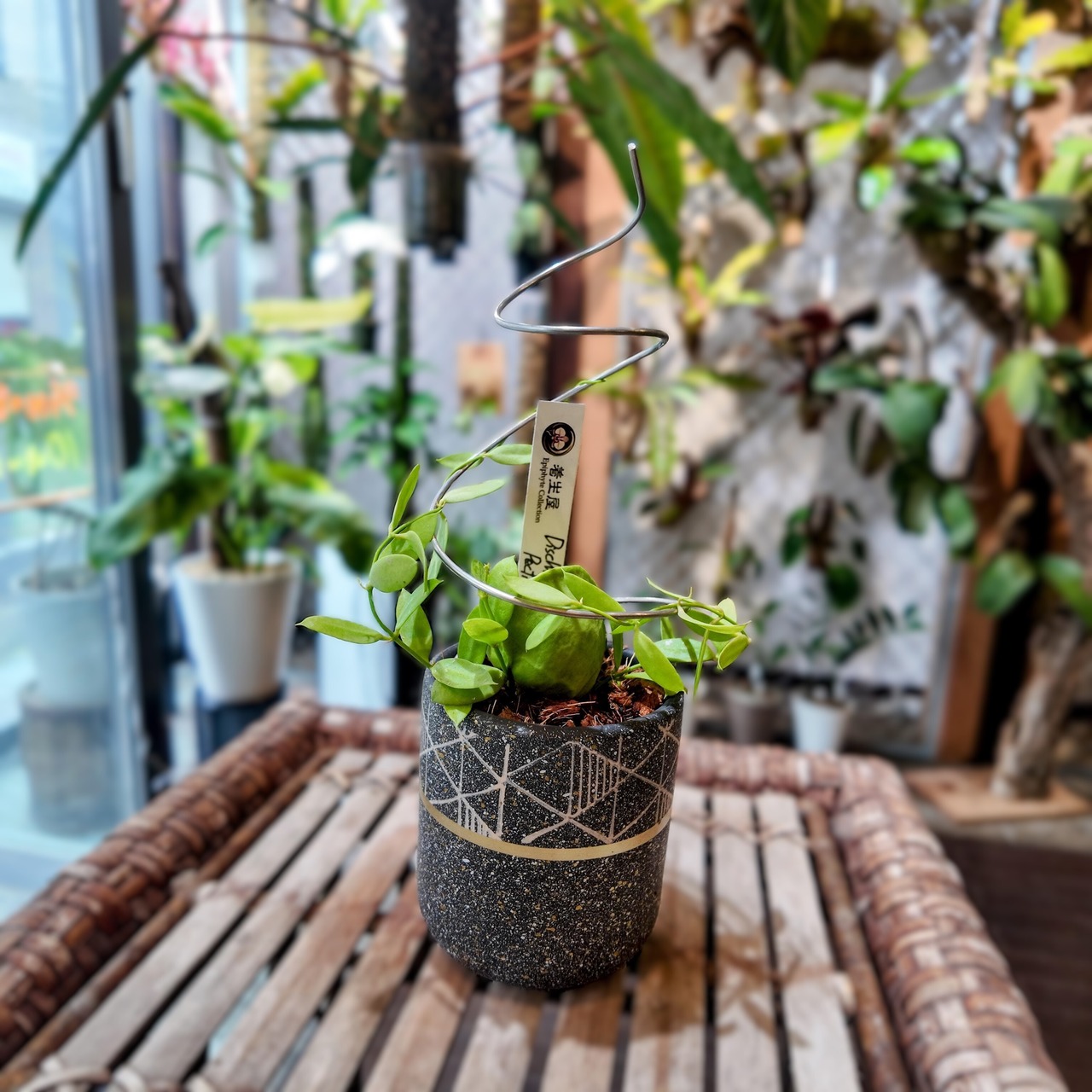 美しい葉の色合いとおしゃれな形状が魅力のディスキディア・ペクチノイデスは別名「カンガルーポケット」。