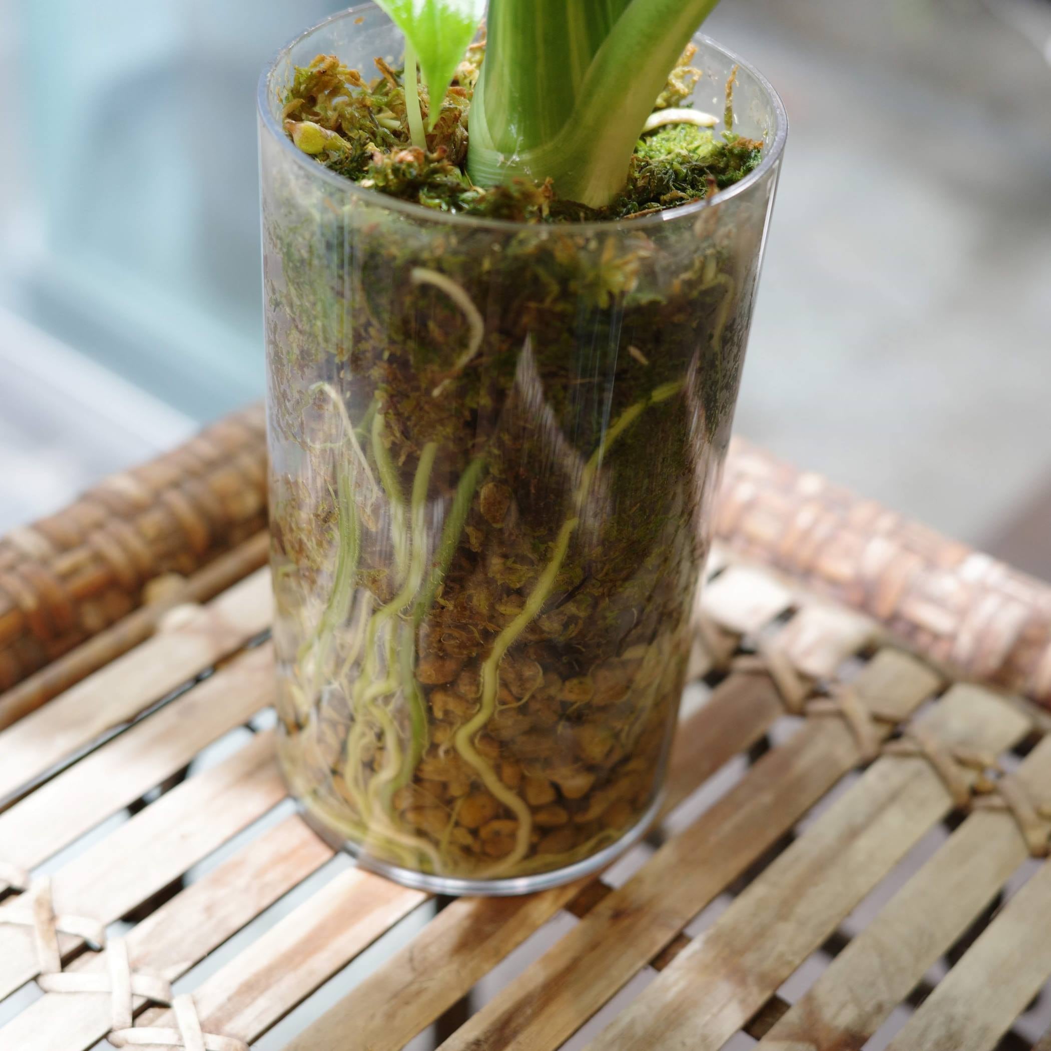 水やりはアクリルボトルの底に水が無くなったら、ボトルの底に1cm程度まで水が溜まるように入れてください。